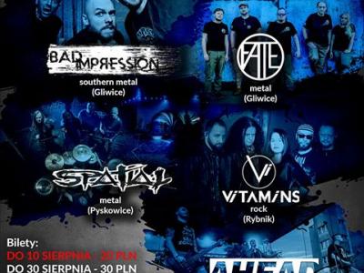 Po raz drugi zespół FATE wraz z Amfiteatr BUK organizują koncert zespołów ''mocnego uderzenia''. W ubiegłym roku były to trzy zespoły - Bad Impression, FATE oraz Nihilistic. W tym roku zagra dla was aż 5 kapel! Tym razem do wspólnego grania zaprosiliśmy Ironbound_PL, AHEAD, Vitamins oraz Spatial....