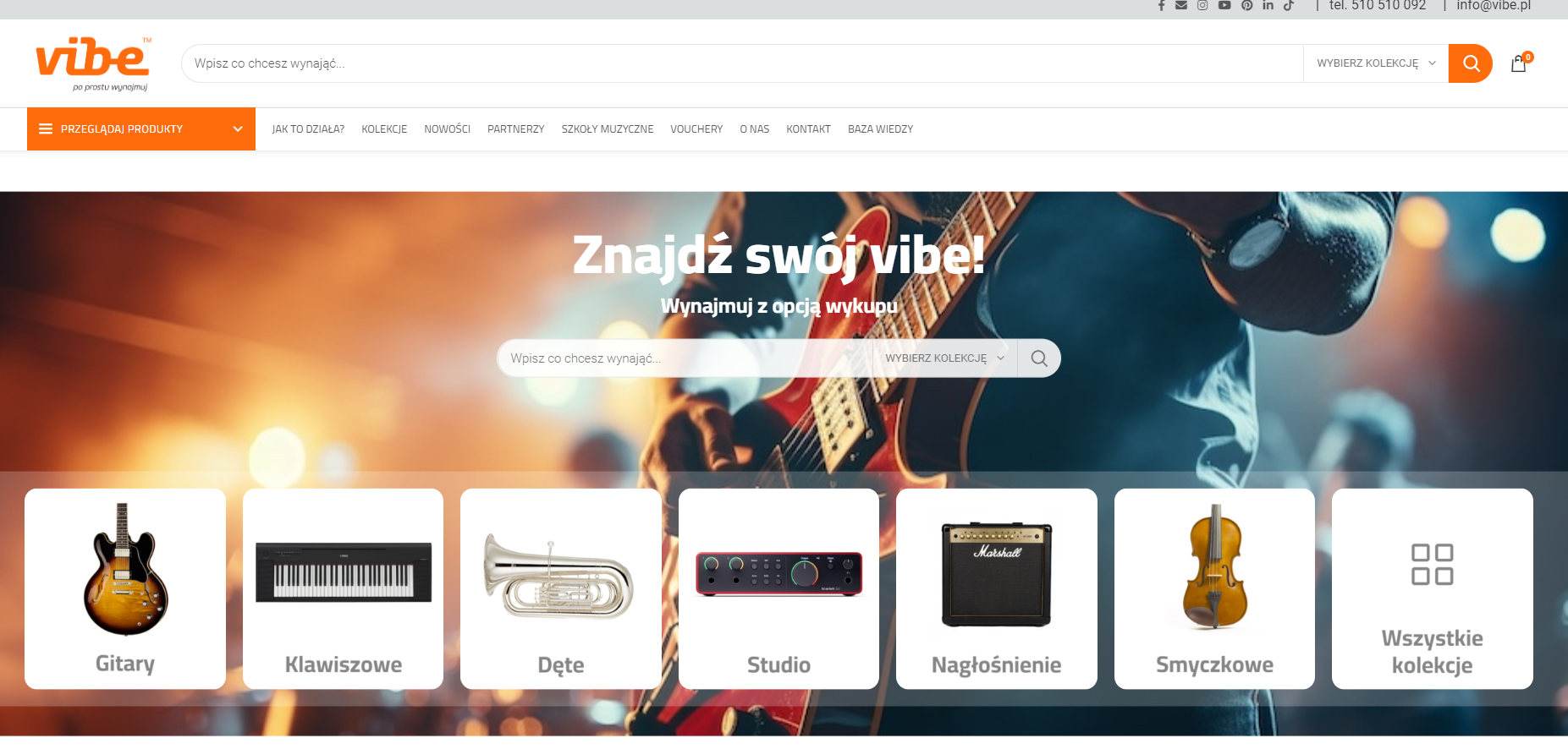 Z dumą oferujemy największy wybór sprzętu muzycznego i akcesoriów do wynajęcia w Polsce. Na Vibe.pl znajdziesz aż 20 589 instrumentów i akcesoriów, które możesz wynająć z opcją wykupu. Dlaczego warto wynająć sprzęt muzyczny z Vibe.pl?
