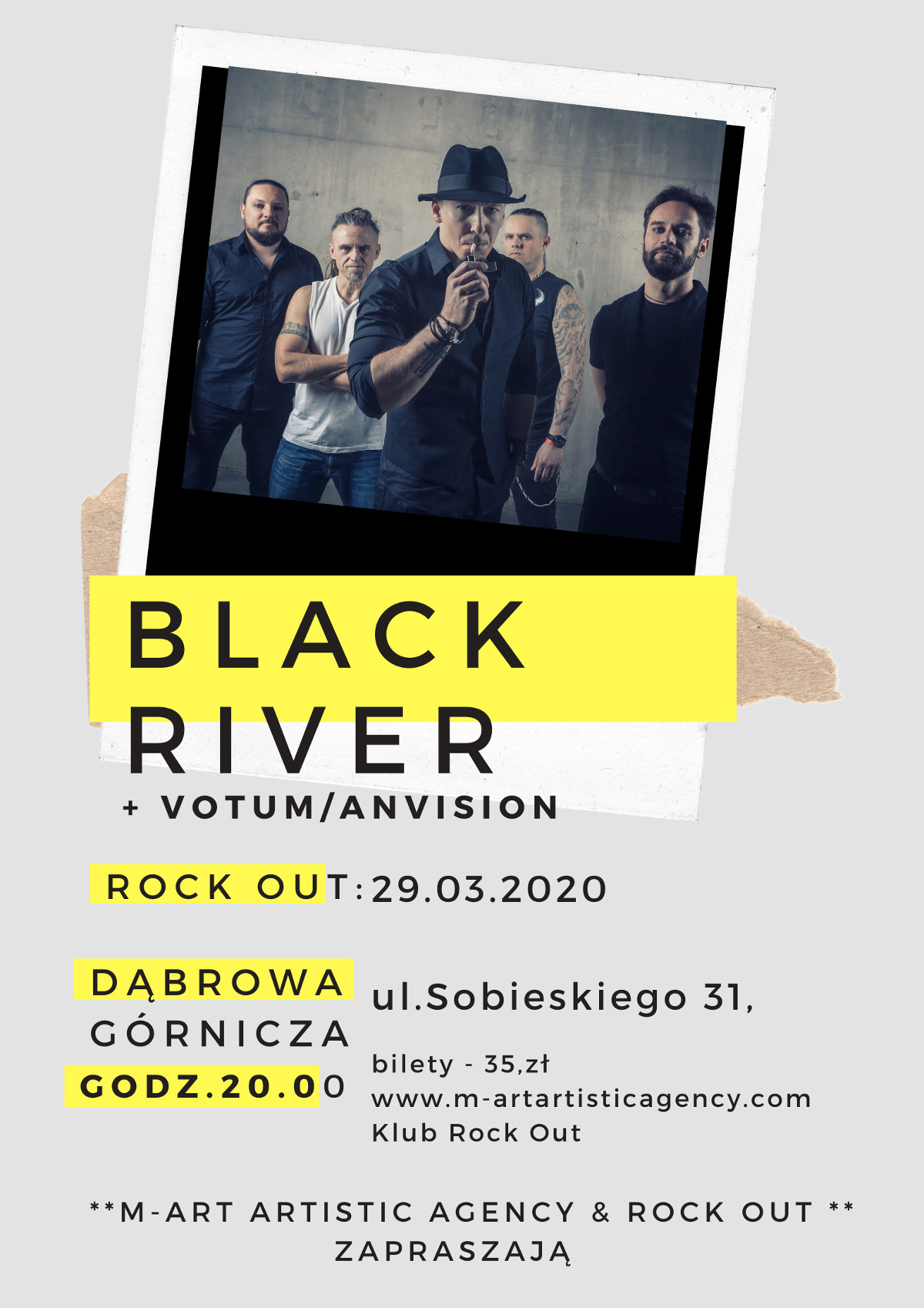 29 marca w Rock Out w ramach trasy promującej najnowsze wydawnictwo pojawi się super grupa BLACK RIVER. Niepowtarzalna okazja posłuchania artystów takich formacji jak Behemoth, Dimmu Borgir, Rootwater, Geisha Goner, HUNTER, Vesania czy Neolithic tworzących tę wyjątkową kapele już w końcu marca w Dąbrowie Górniczej. Przed nimi gościnnie pojawi się formacja Votum oraz zespół agencji M-ART progresywno metalowa grupa AnVision . Warto wspomnieć, że zespół AnVision właśnie przygotowuje się do wydania nowej płyty "Love & Hate", premiera krążka już 25 kwietnia w tarnowskim klubie Lustrzana Piwnica w rodzinnym mieście muzyków a 15 maja w Warszawie. Wkrótce więcej szczegółów Przypominamy AnVison gościł m.in na „Prog The Castle Festival" w Heidelbergu,wspierał Tarję Turunen (ex Nigtwish) podczas europejskiej trasy koncertowej obejmującej Węgry, Rumunię, Grecję, Bułgarię i Turcję czy na „Maximum Rock Festival". Gwiazda wieczoru Black River natomiast zaprezentuje swój nowy album już 19 marca. Płyta zatytułowana jest "Genaration aXe" . Tego samego dnia zespół wyruszy w trasę koncertową obejmująca m.in klub Rock Out. Pierwszym zwiastunem wydawnictwa jest utwór "Whiplash".Krążek "Generation aXe" to limitowane wydawnictwo, które będzie dostępne wyłącznie na koncertach w formie CD (Digi Pack). Znalazło się na nim dziesięć premierowych utworów plus bonus track w postaci coveru The Doors "Break On Through" Zapraszamy na koncert 29 marca , równo 10 dni po wydaniu płyty.