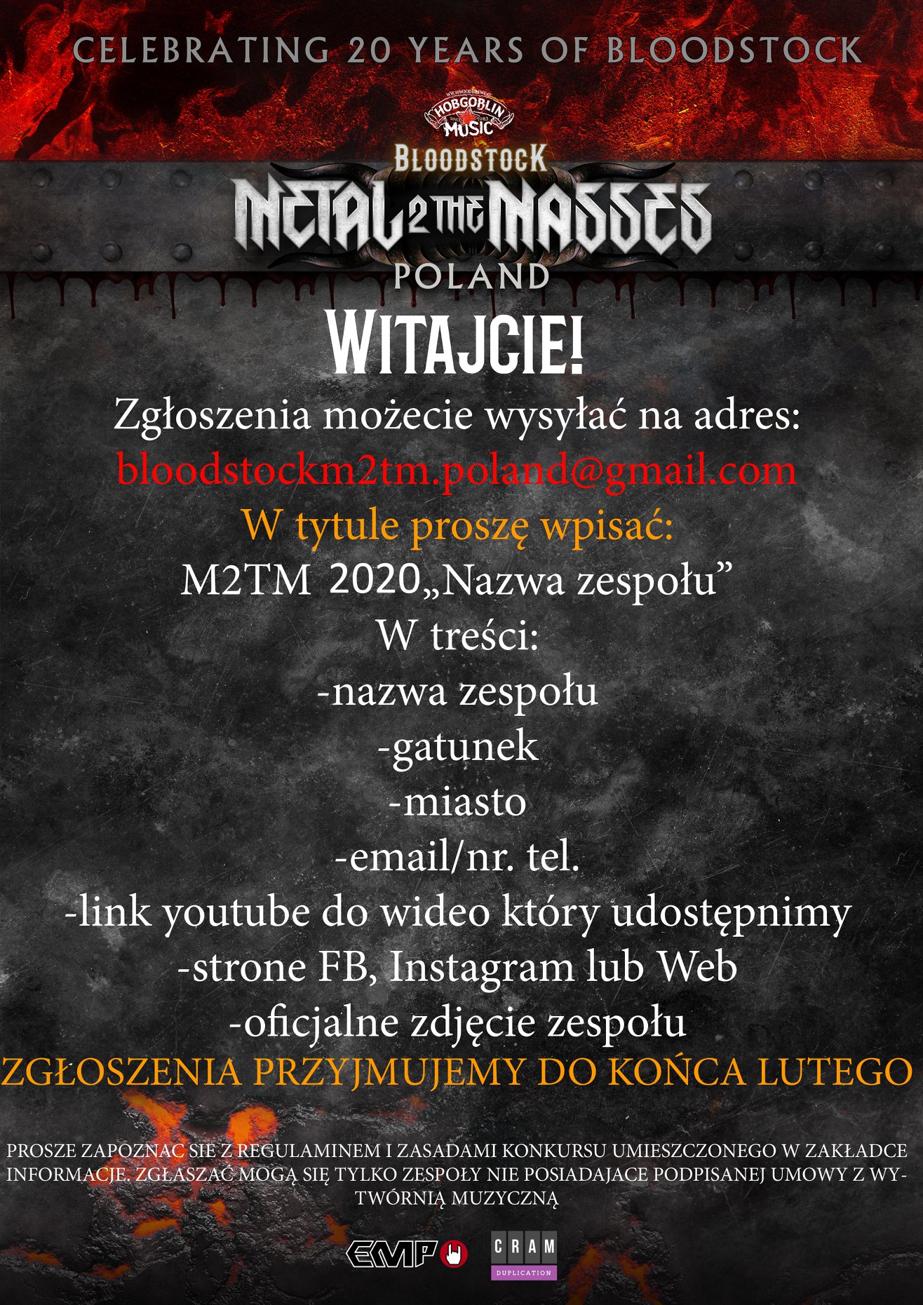 Zgłoszenia wysyłamy na adres: Bloodstockm2tm.poland@gmail.com