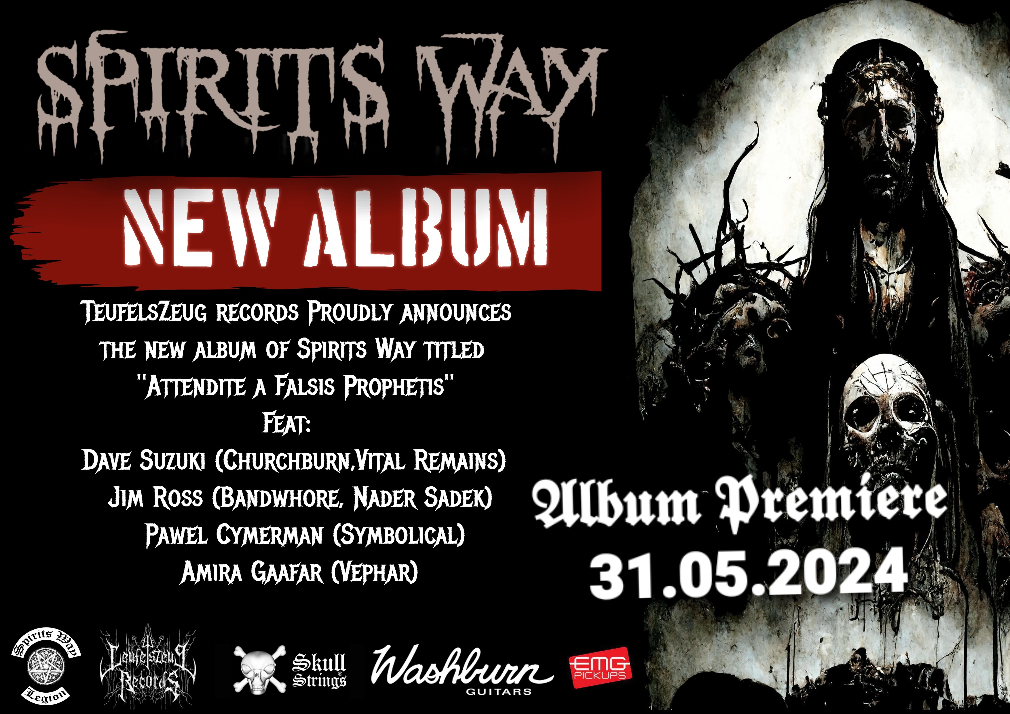 Mamy przyjemność ogłosić szczegóły naszego trzeciego albumu studyjnego zatytułowanego „Attendite a falsis prophetis”. Premiera albumu zaplanowana jest na 31 maja za pośrednictwem Teufelszeug Records. „Attendite a falsis prophetis” to mroczna, brutalna death metalowa ścieżka dźwiękowa do rozpadającego się wszechświata, pełna pogardy dla kłamstw ludzkości i religii. Spirits Way wzniósł się na nowy poziom kreatywności i jesteśmy pewni, że pokochacie nowy album tak samo jak my. Podobnie jak w przypadku naszych poprzednich albumów, rozpoczęliśmy pracę nad tym z taką samą pasją i skupieniem, z jakim nagrywaliśmy nasz pierwszy album. Nigdy nie braliśmy niczego za pewnik, nie tylko pamiętając o standardach, których oczekują nasi fani, ale także starając się dopracować nasze brzmienie.