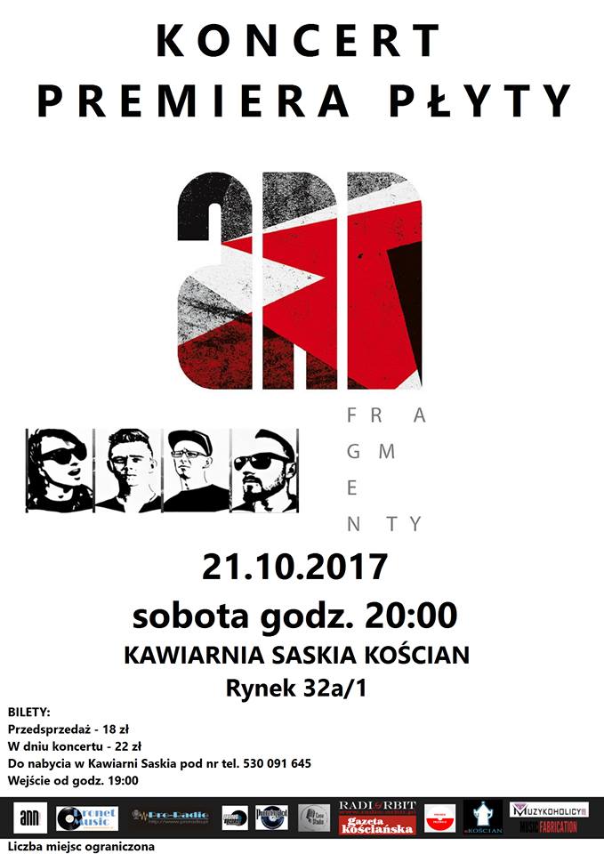 Debiutancka płyta "Fragmenty" oraz premierowy koncert zespołu ANN już 21 października w Kawiarnia Saskia Kościan w Kościanie. Biletów niestety już nie ma, ale jest możliwość zorganizowania drugiego koncertu z tej okazji.