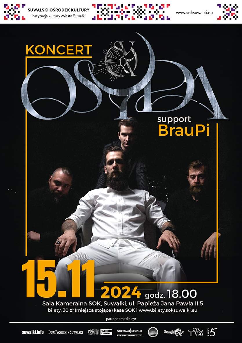 Podczas koncertu w sali kameralnej Suwalskiego Ośrodka Kultury publiczność będzie miała okazję usłyszeć na żywo nowy singiel, który dostępny jest już na kanale zespołu na Youtube. Osydę supportuje BrauPi.