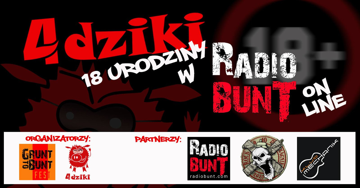 W tych ciężkich czasach, kiedy za rolkę papieru można kupić kawalerkę w Krakowie. Kiedy musisz spać 2 metry od żony. 4DZIKI i Radio Bunt zapraszają Was na Dziką 18-nastkę, która pozwoli wam opuścić umysłowe kwarantanny.