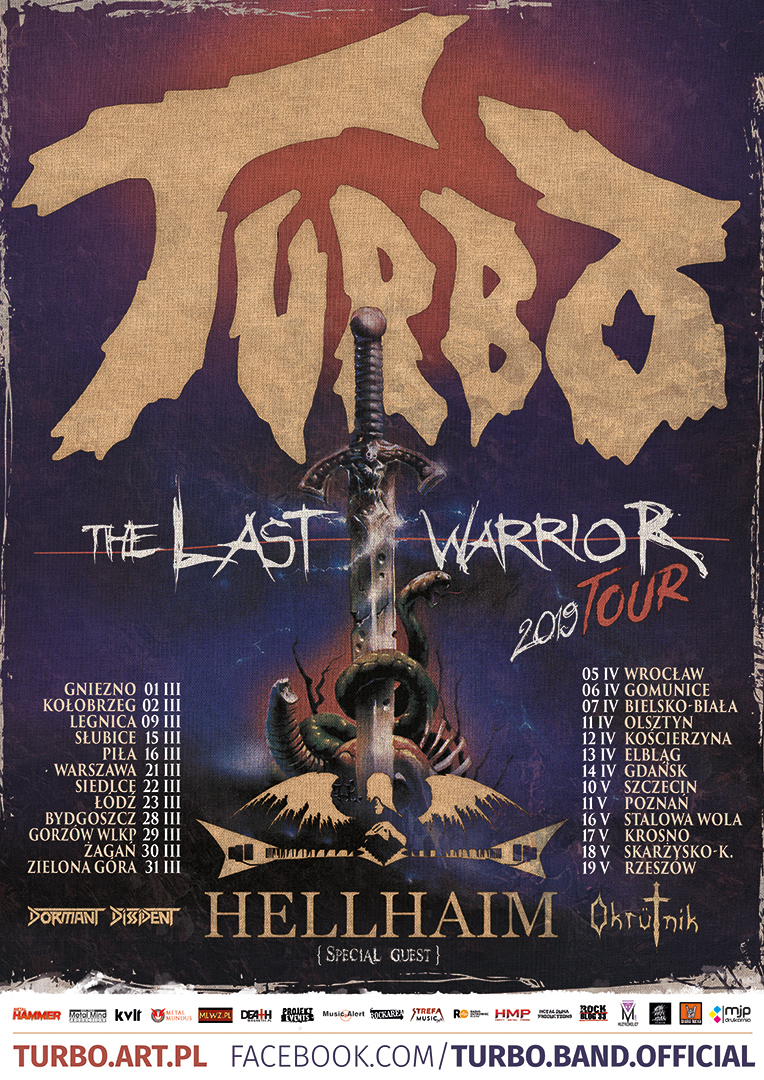 Przypominamy, że już w nadchodzący weekend koncertami w Gnieźnie (1 marca) i Kołobrzegu (2 marca) startuje kolejna obszerna trasa żywej legendy metalu – poznańskiej formacji TURBO. Obejmujące 25 koncertów tournee przebiegać będzie pod szyldem ‘The Last Warrior Tour’ i na jego potrzeby zespół zapowiada najostrzejszy repertuar w swoim dorobku z pełną prezentacją arcydzieła polskiej muzyki thrash lat osiemdziesiątych – albumu ‘Ostatni Wojownik’.